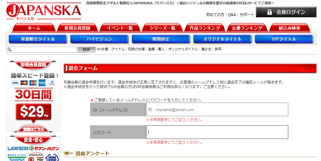 JAPANSKA(ヤパンスカ)の退会方法を図解案内